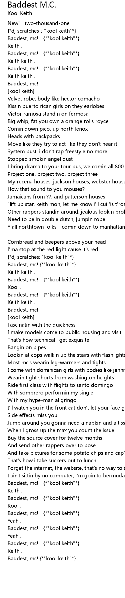 | Baddest, mc! {*"kool keith"*} |
