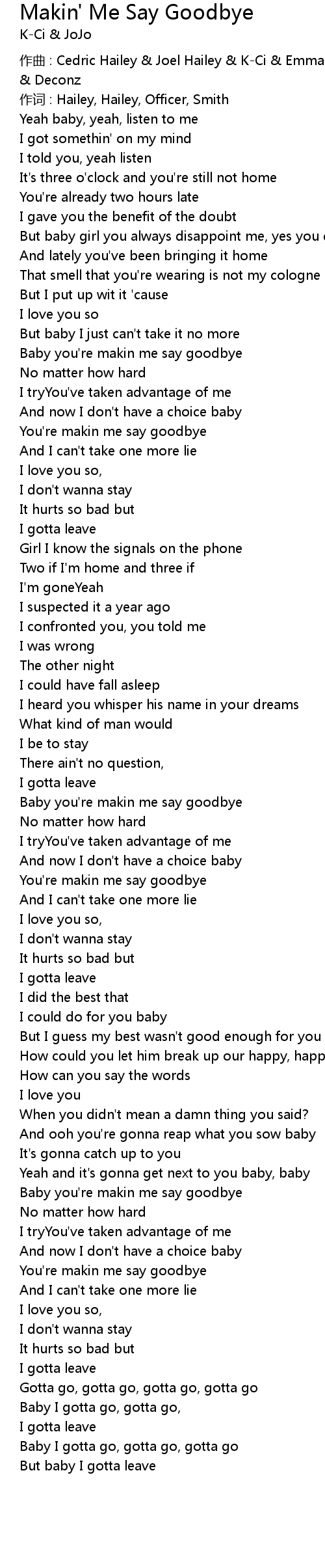 | 作曲 : Cedric Hailey & Joel Hailey & K-Ci & Emmanuel Officer & Emanuel Officer & Deconz | |