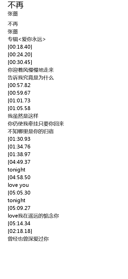 | [05:31.01][04:58.50][04:27.13][03:55.12][03:16.16][01:54.68] | zai yi ci yong bao wo well love you |