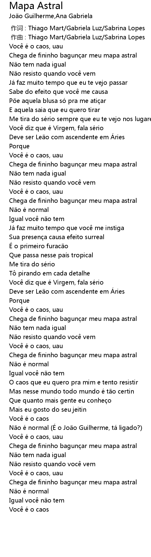 | 歌曲 | Mapa Astral |