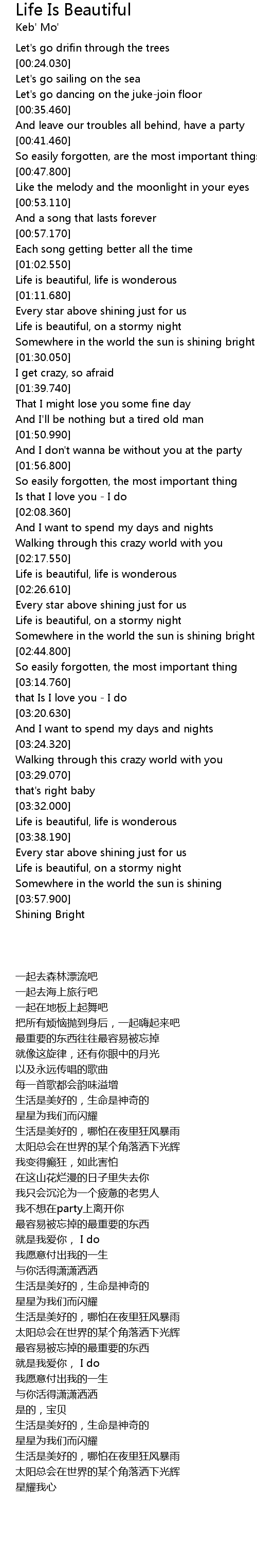[03:33.000] Life is beautiful, life is wonderous