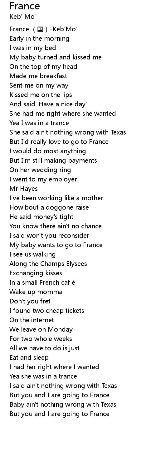 | [02:32.397] | Baby ain' t nothing wrong with Texas |