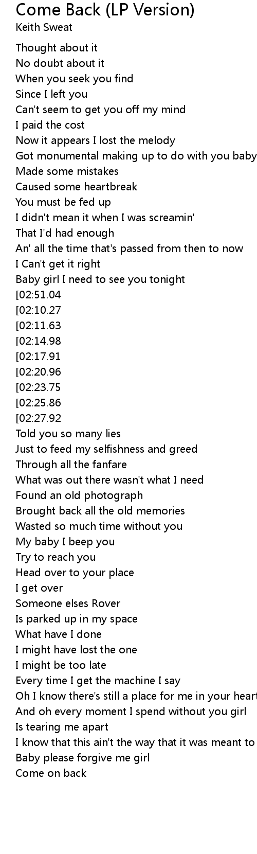 Come Back (LP Version) 歌词