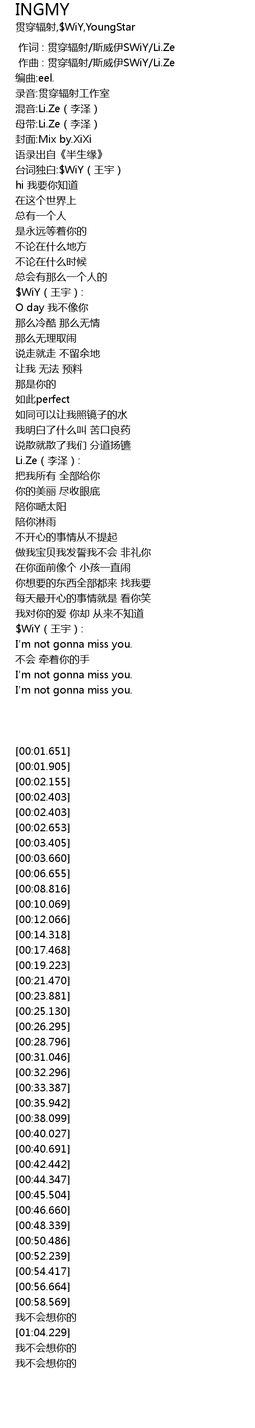 | [00:03.405] | tái cí dú bái: WiY wáng yǔ |