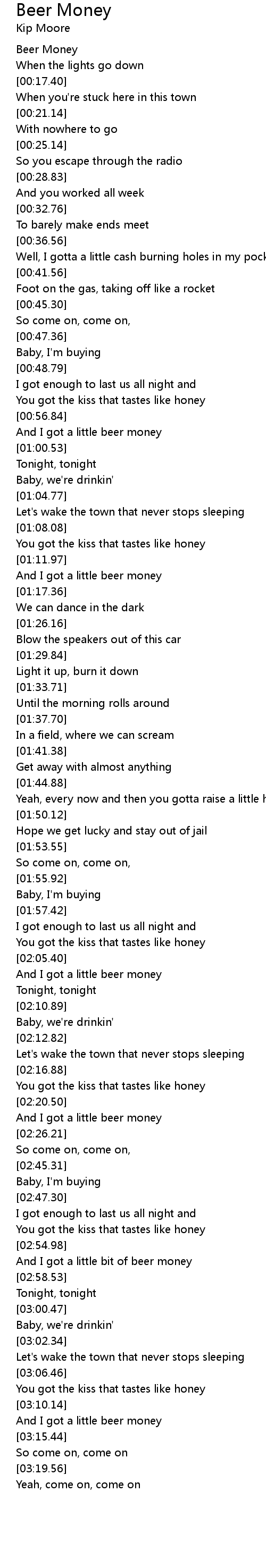 And I got a little beer money |