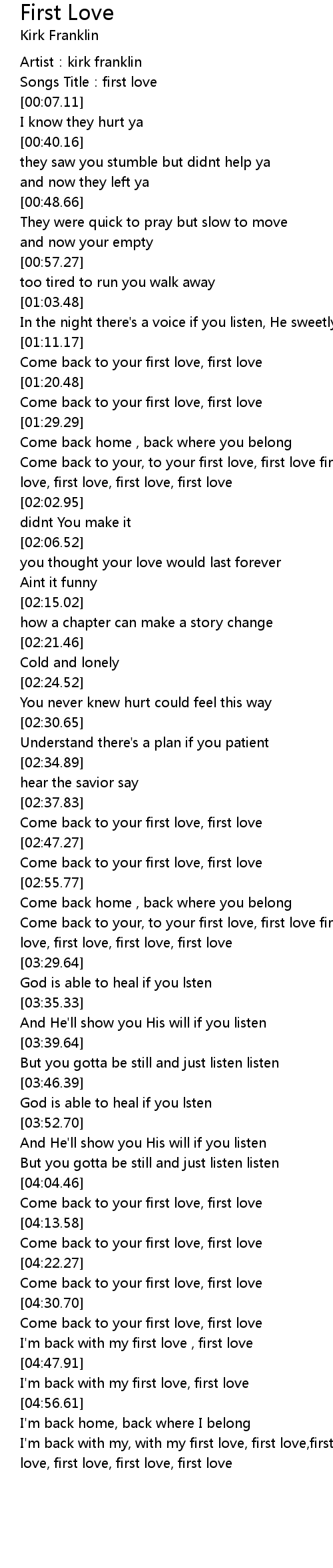 | [03:06.33] | Come back to your, to your first love, first love first love, first love, first love, first love, first love |