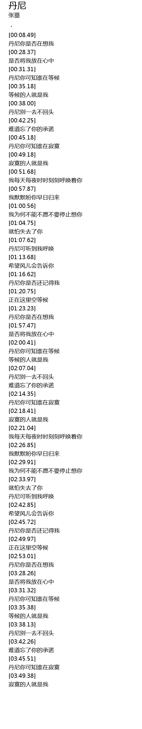 | [03:46.38] | 丹尼你可知谁在寂寞 |