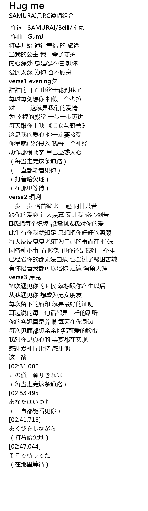 | [00:00.000] | 作词 : SAMURAI/Beili/库克 |