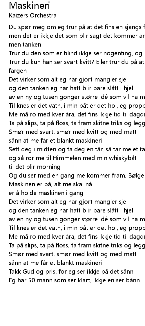 | Maskinen er på, alt me skal nå | |