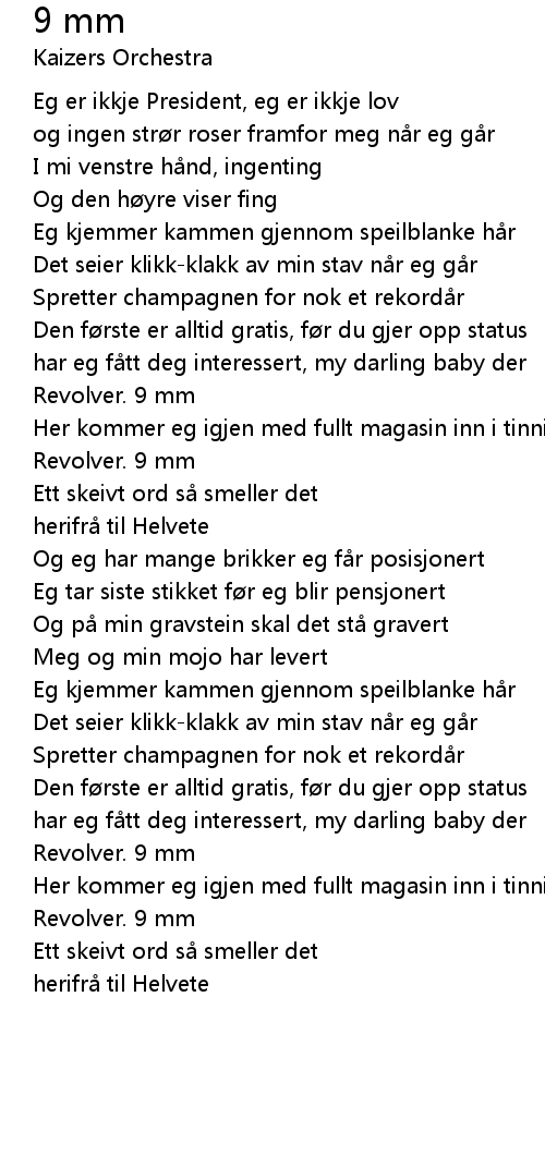 | Her kommer eg igjen med fullt magasin inn i tinningen | |