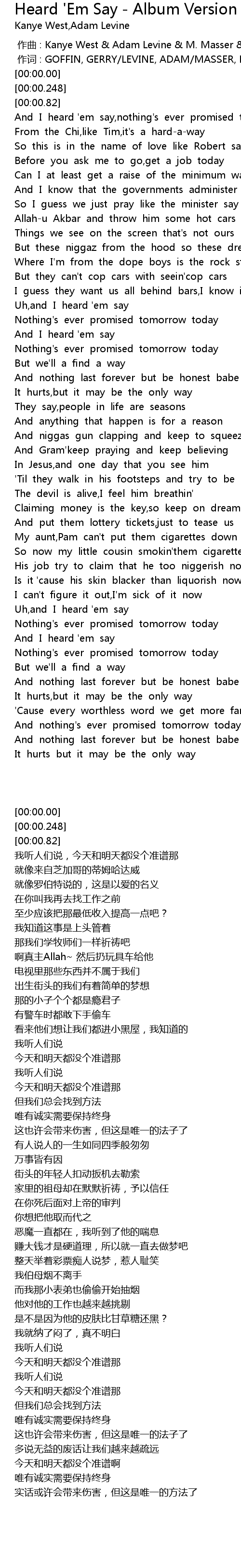 | [00:00.00] | zuò qǔ : Kanye West Adam Levine M. Masser G. Goffin |