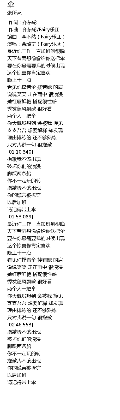 | [00:53.830] | 两个人一把伞 |