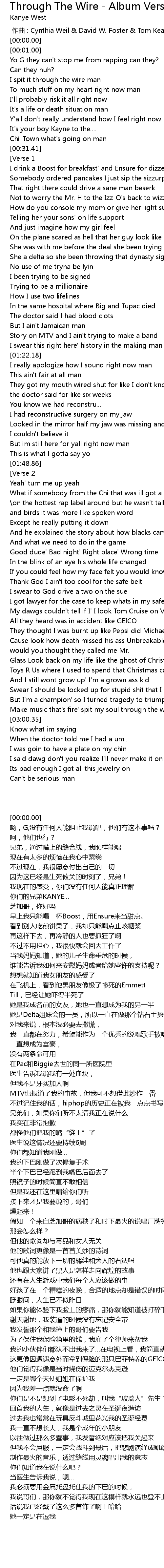 | [01:27.18] | They got my mouth wired shut for like I don't know |