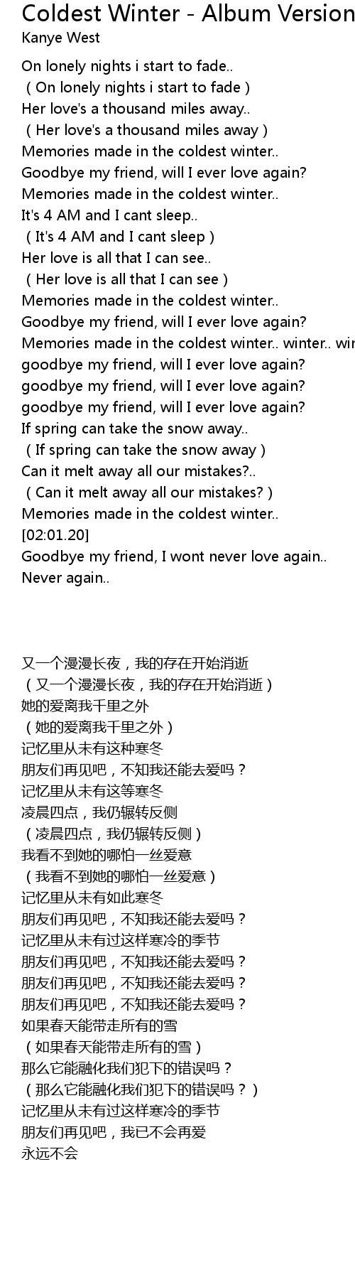 | [01:58.34] | Memories made in the coldest winter.. |