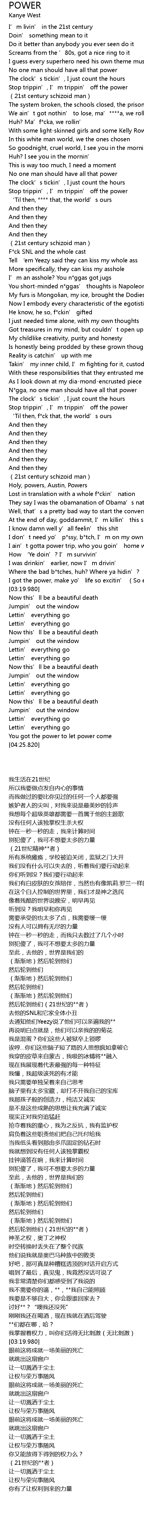 | [01:32.880] | 去通知他们Yeezy说了他们可以亲遍我的** |
