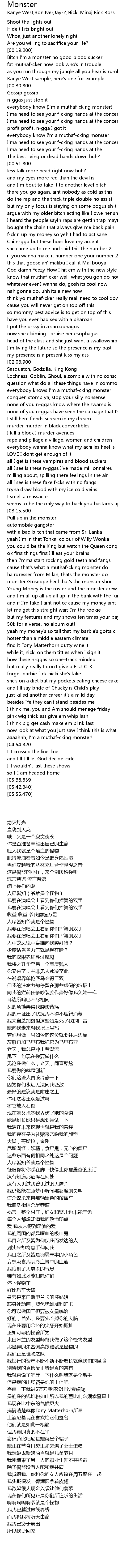 | [02:31.230] | everybody knows I'm a muthaf-cking monster |