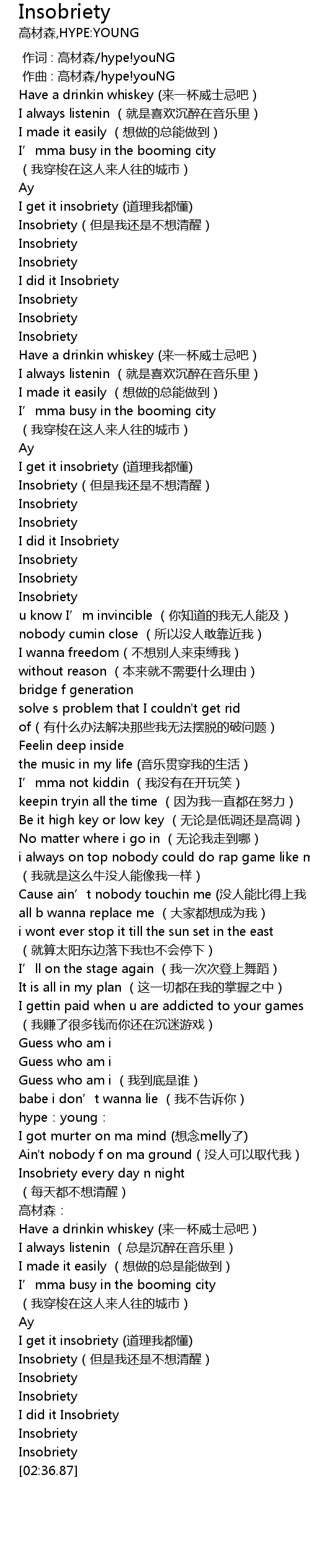 | [02:28.41] | Insobriety |