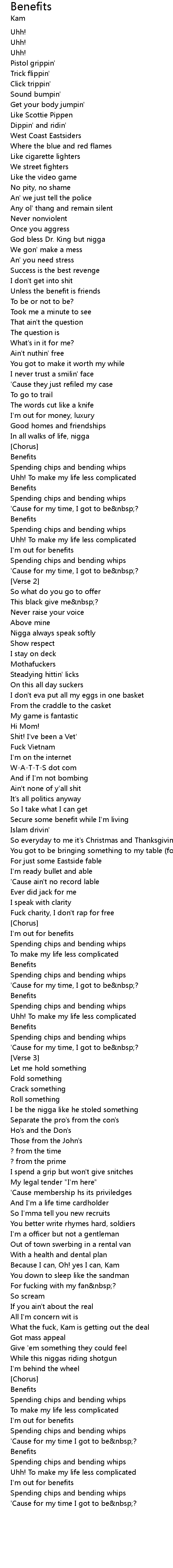 | I'm out for benefits | |