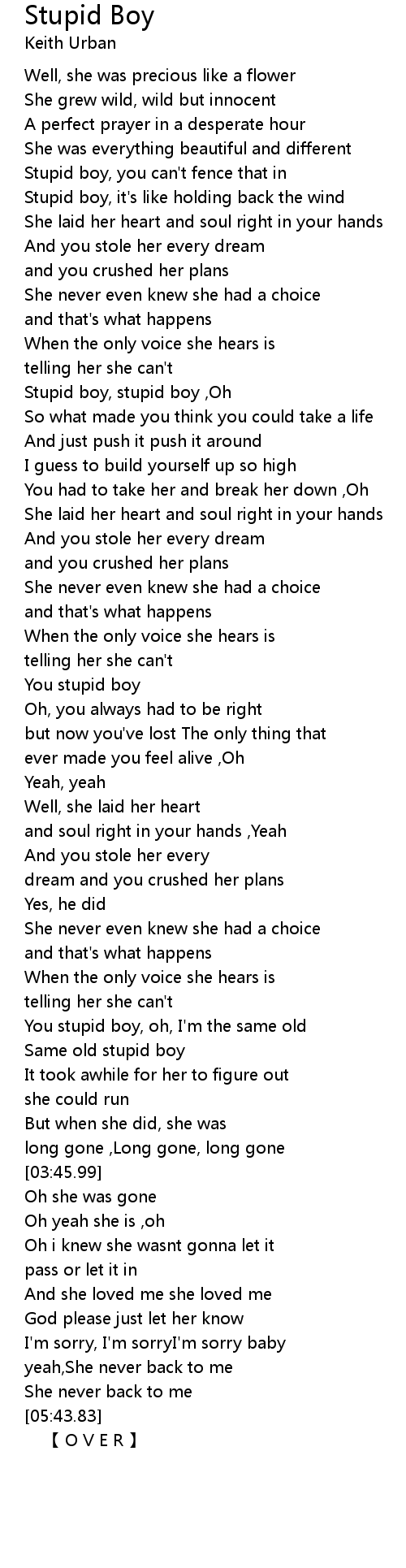 | [01:18.06] | Stupid boy, stupid boy ,Oh |