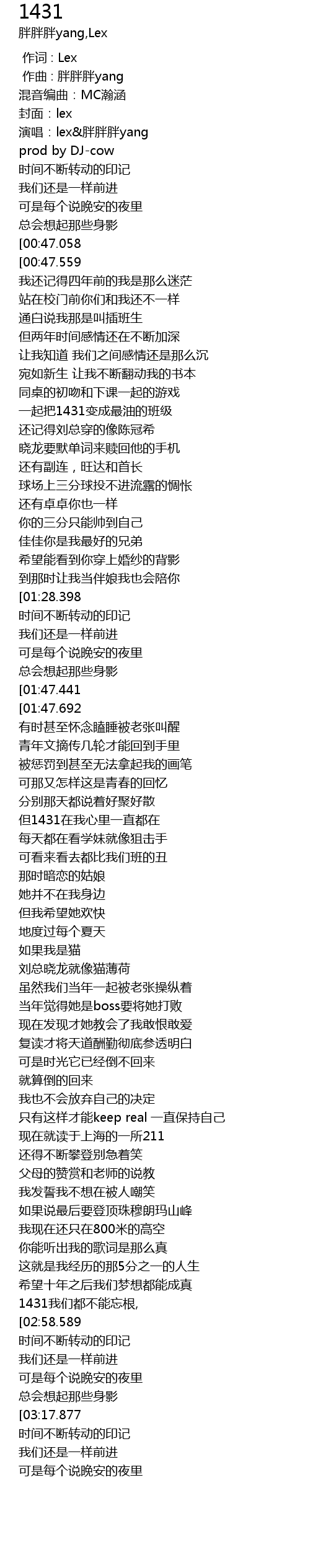 | [01:05.148] | 一起把1431变成最油的班级 |