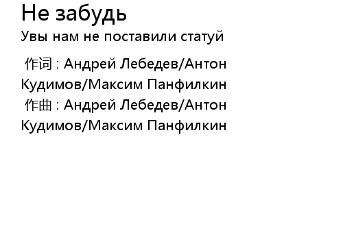 | 歌曲 | Не забудь |