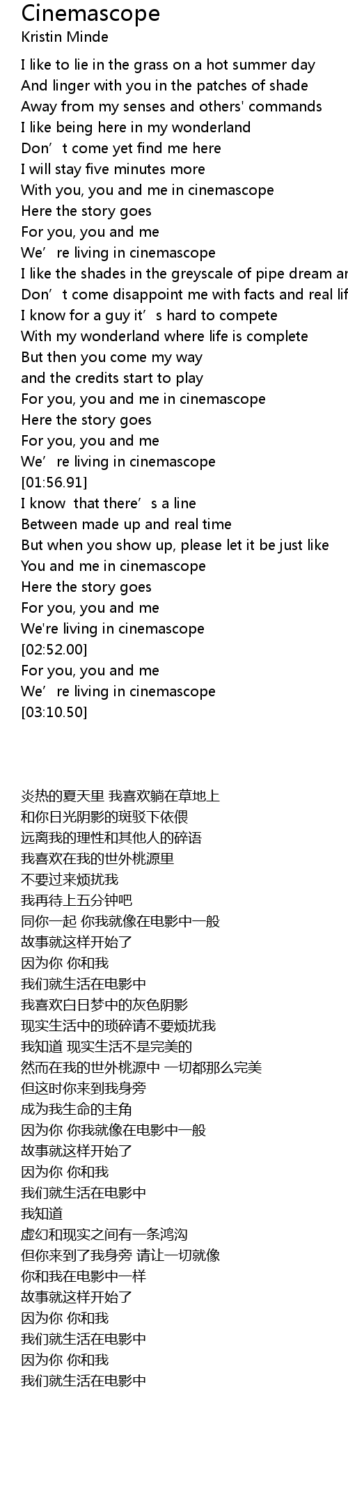 | [00:48.11] | With you, you and me in cinemascope |