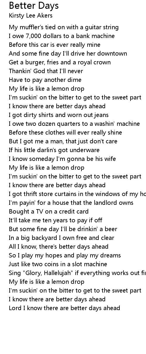 All I know, there's better days ahead |