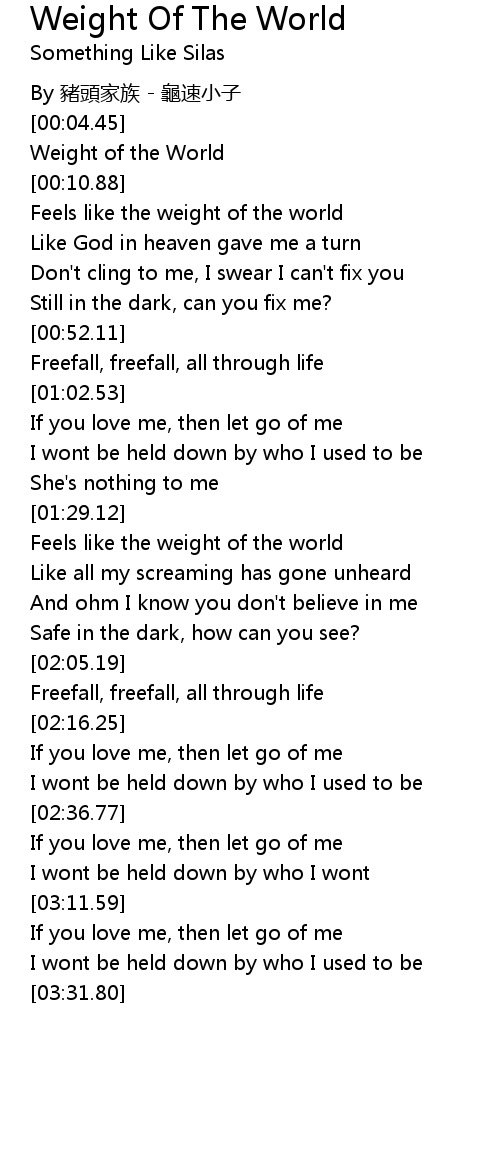 | [00:07.19] | Weight of the World |