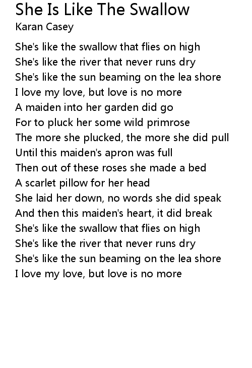 She's like the swallow that flies on high |