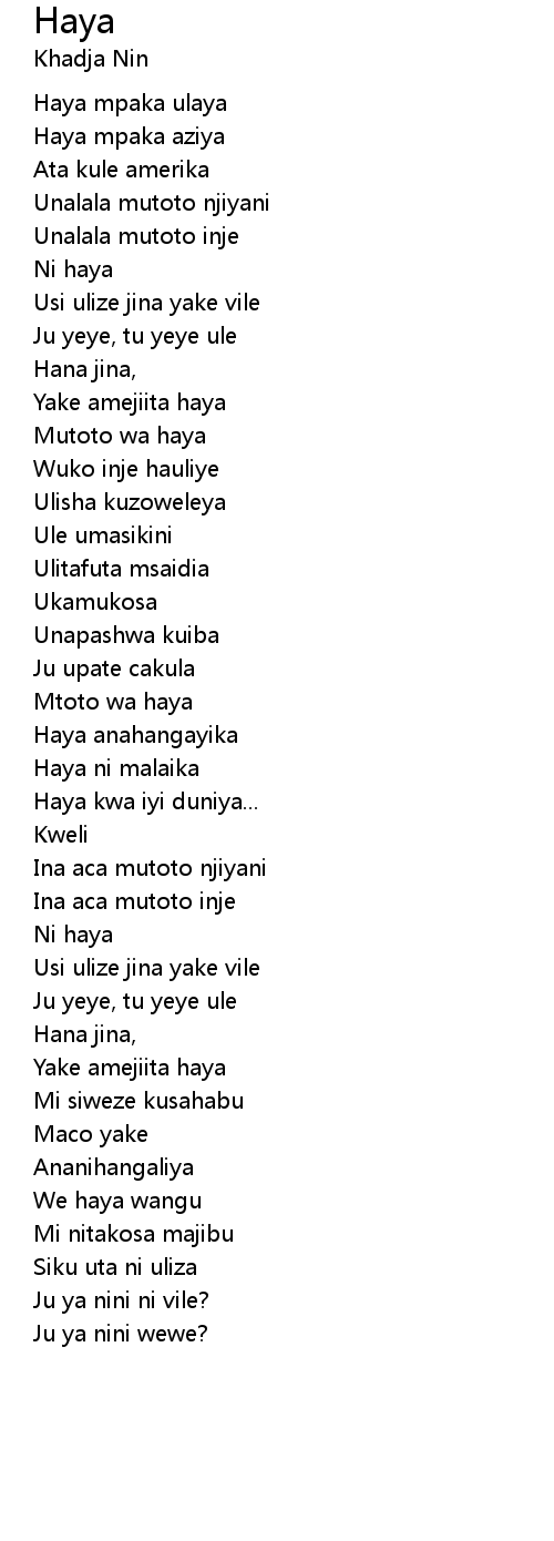 We haya wangu |