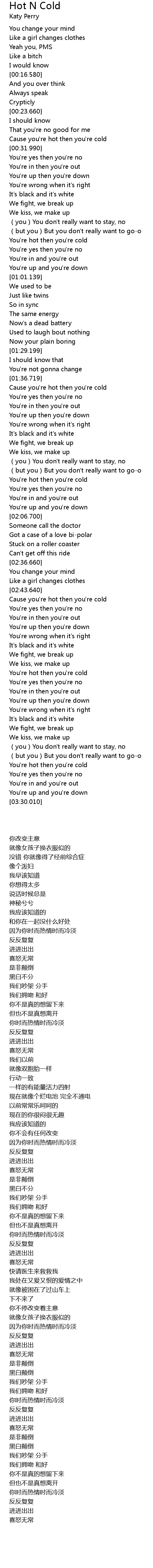 | [03:00.790] | You' re hot then you' re cold |