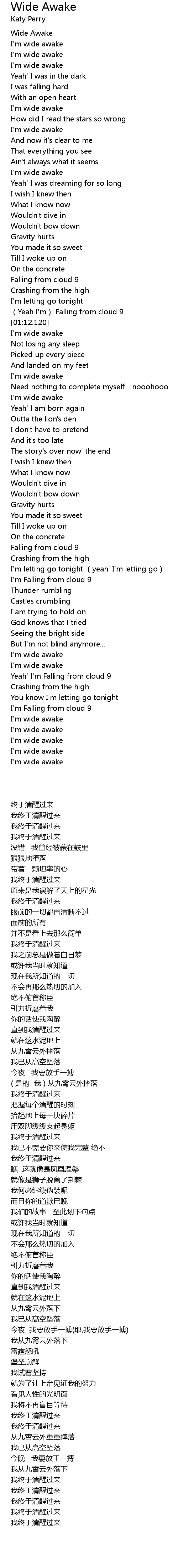| [00:18.230] | I'm wide awake |