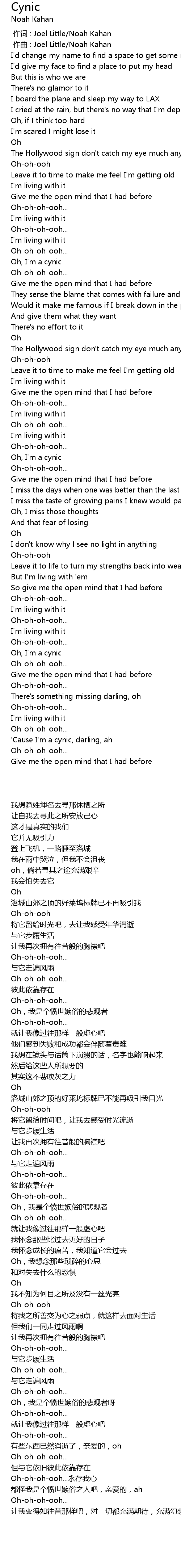 | [03:16.81] | 'Cause I'm a cynic, darling, ah |