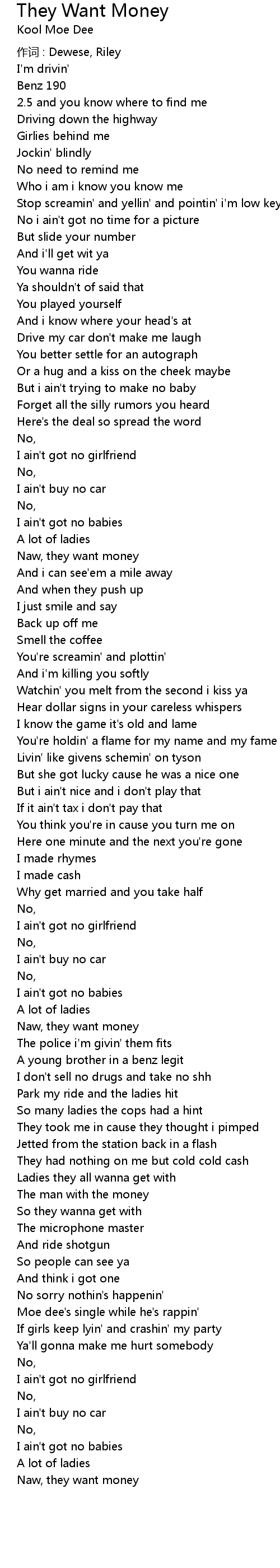 | 歌曲 | They Want Money |