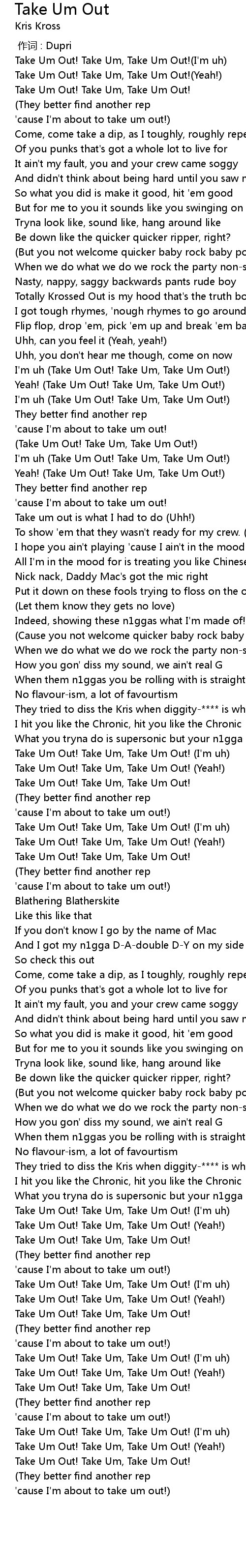 | [03:47.70] | Take Um Out! Take Um, Take Um Out! |