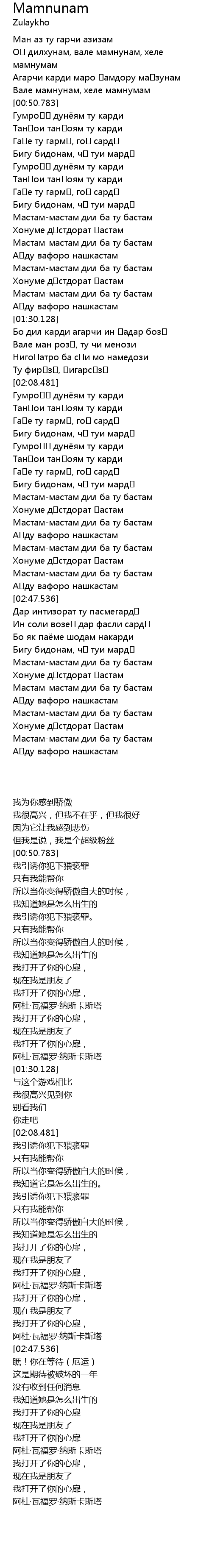 | [00:33.001] | Оҳ дилхунам, вале мамнунам, хеле мамнумам |