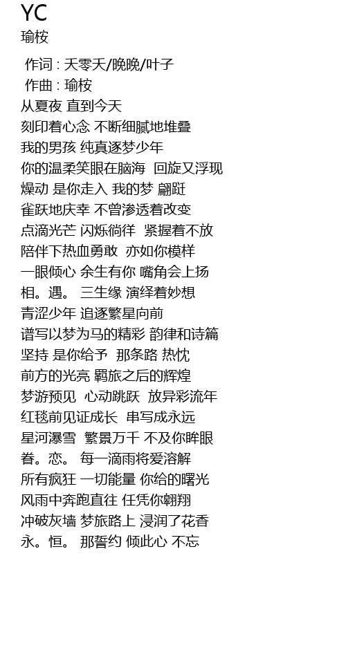 | [00:00.000] | 作词 : 夭零夭/晚晚/叶子 |