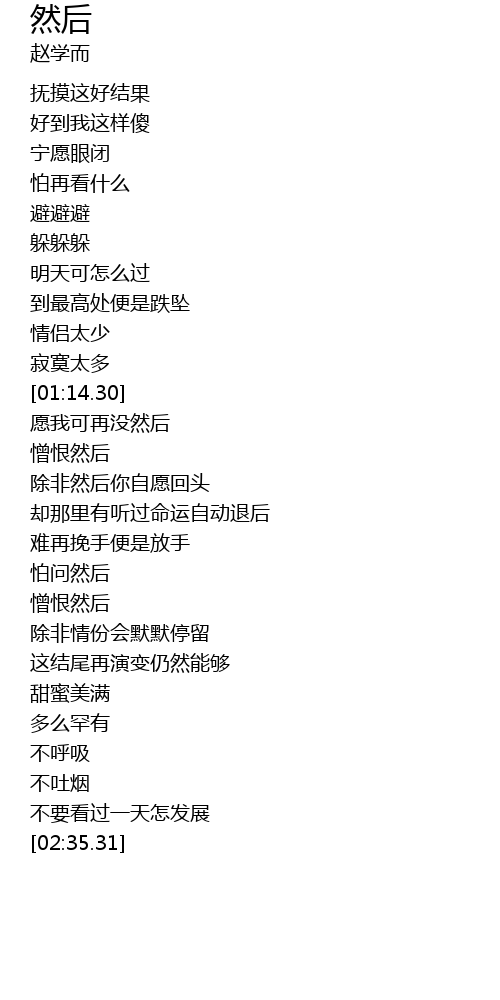 | [01:14.57] | 愿我可再没然后 |