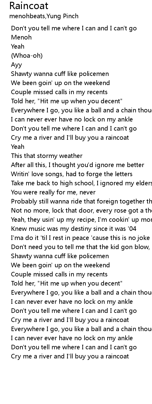 Cry me a river and I'll buy you a raincoat |