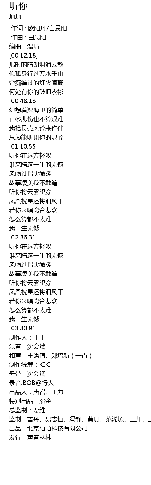 | [00:00.000] | 作词 : 欧阳丹/白晨阳 |