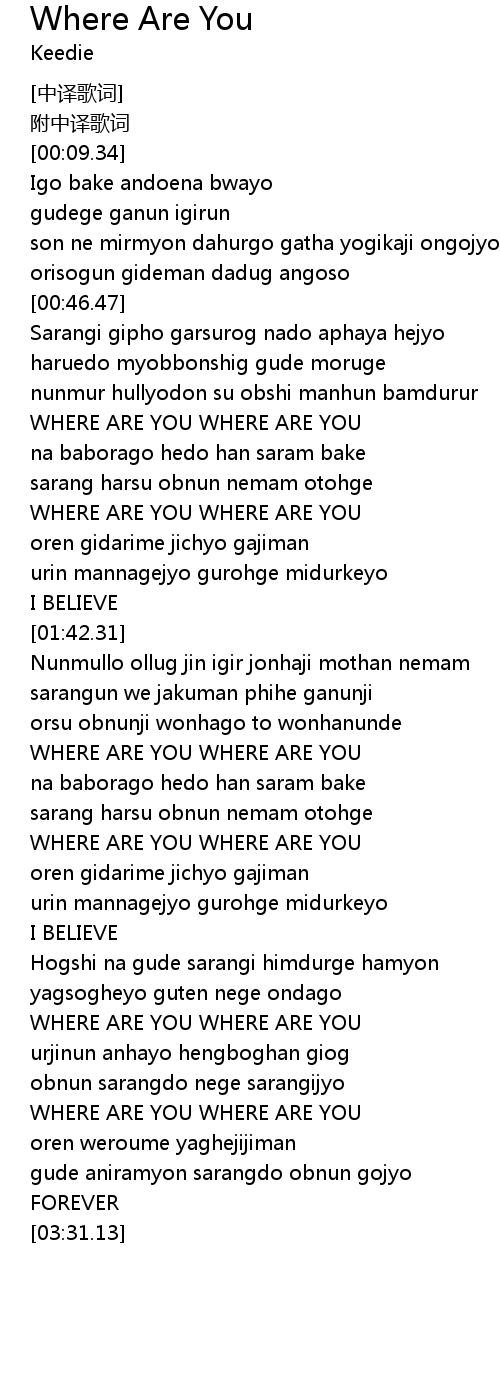 | [02:22.70] | WHERE ARE YOU WHERE ARE YOU |