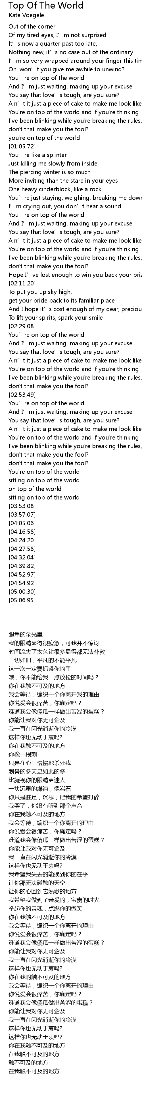 | [00:51.01] | You're on top of the world and if you're thinking |