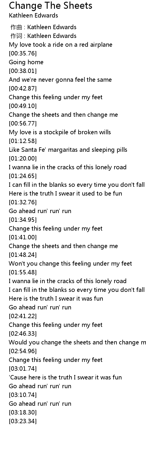 | [00:52.22] | Change the sheets and then change me |