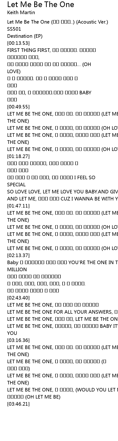 | [00:01.65] | Let Me Be The One .. Acoustic Ver. |