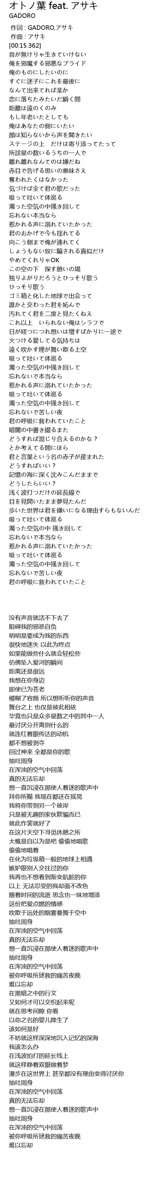 | [00:00.000] | 作词 : GADORO,アサキ |
