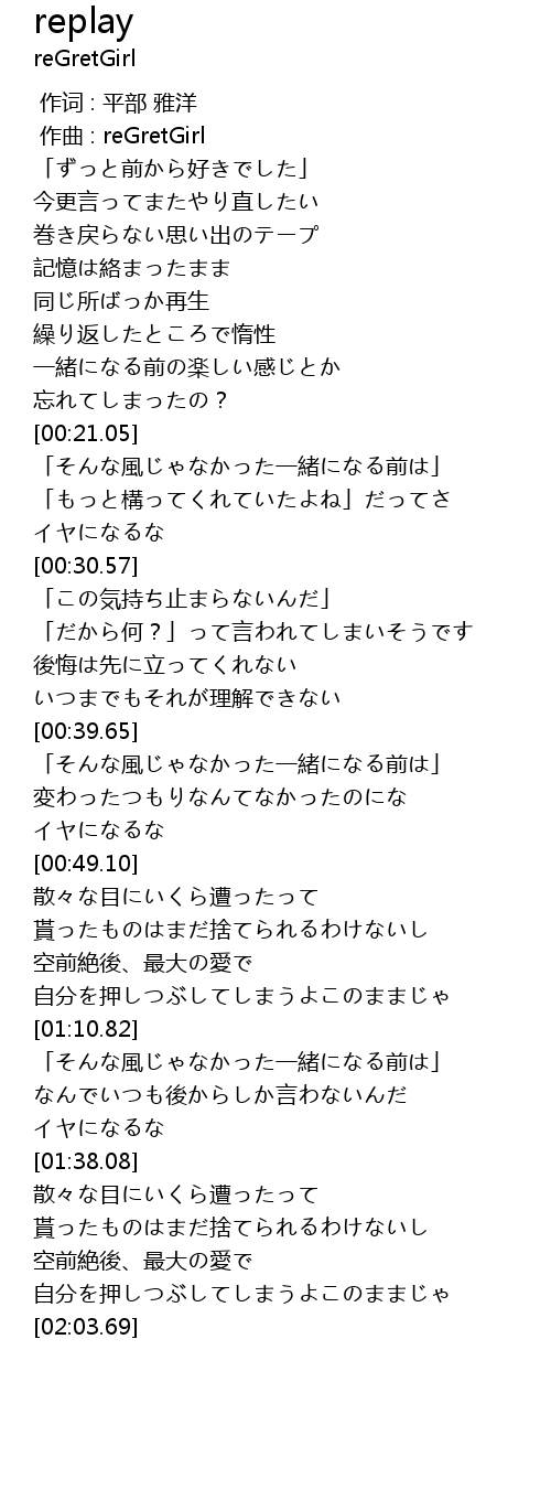 | [00:01.000] | zuo qu : reGretGirl |
