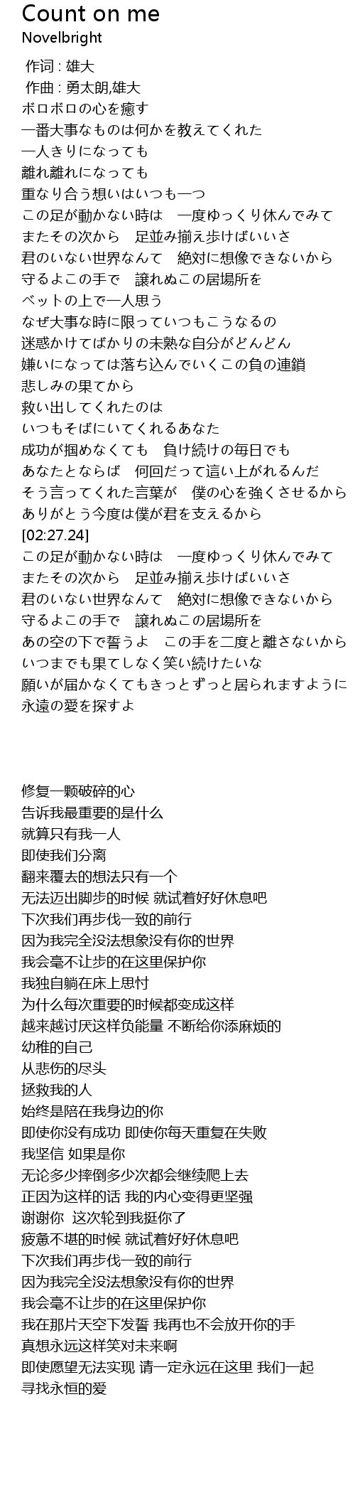 | [02:17.74] | ありがとう今度は僕が君を支えるから |