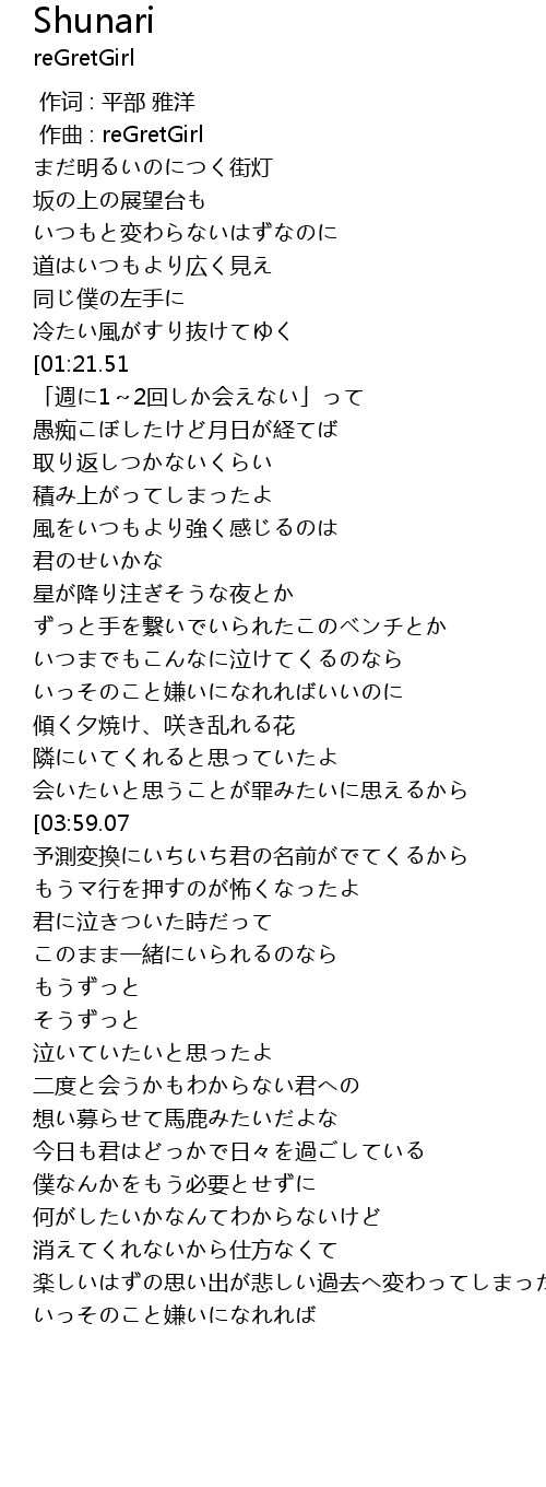 | [00:00.000] | 作词 : 平部 雅洋 |