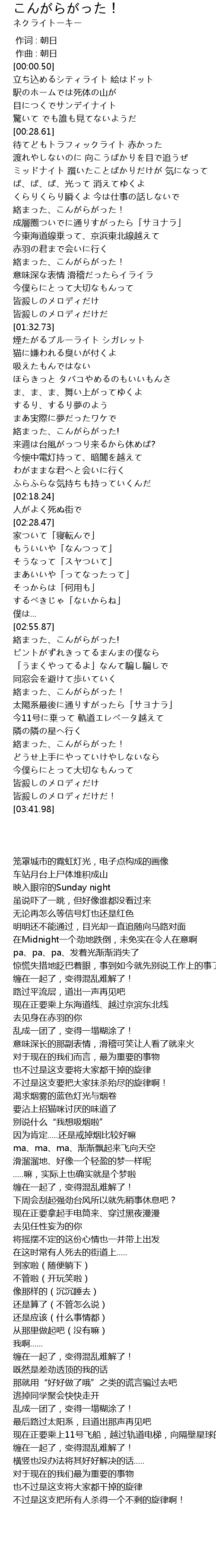 | [02:44.89] | もういいや「なんつって」 |