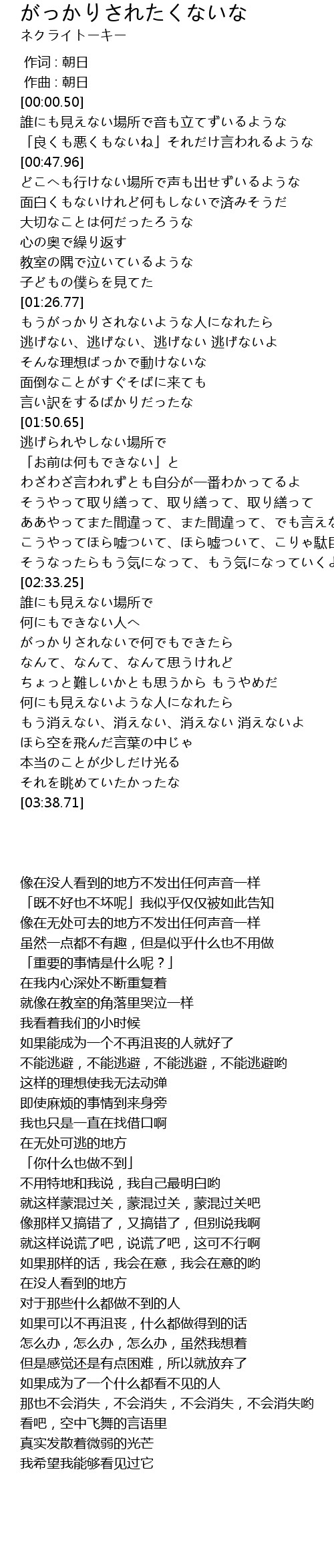 | [03:00.51] | がっかりされないで何でもできたら |
